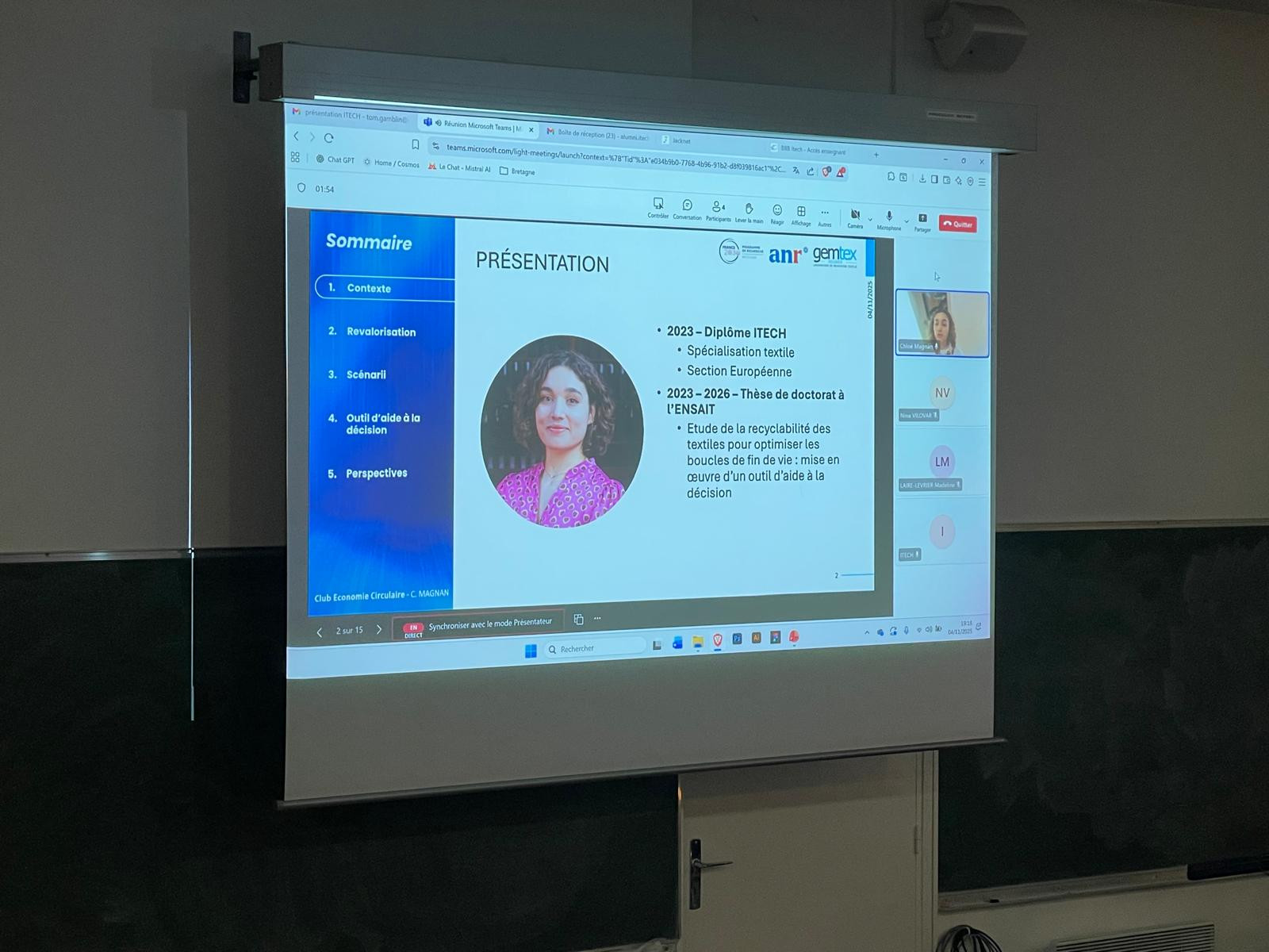 En premier lieu, Chloé Magnan a présenté ses recherches portant sur la mise en place d’un outil d’aide à la décision pour sélectionner les voies de revalorisation des textiles.